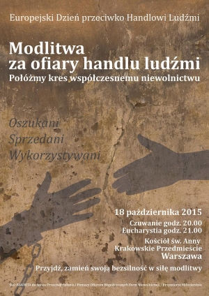 O godz. 20.00 w kościele św. Anny odbędzie się czuwanie modlitewne , a o godz. 21.00 odprawiona zostanie Eucharystia w intencji ofiar handlu ludźmi.