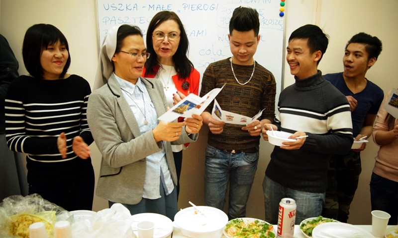 Nie zabrakło tradycyjnych dań polskich i wietnamskich. Uczniowie przygotowali także piękny tort dziękując swoim nauczycielom.